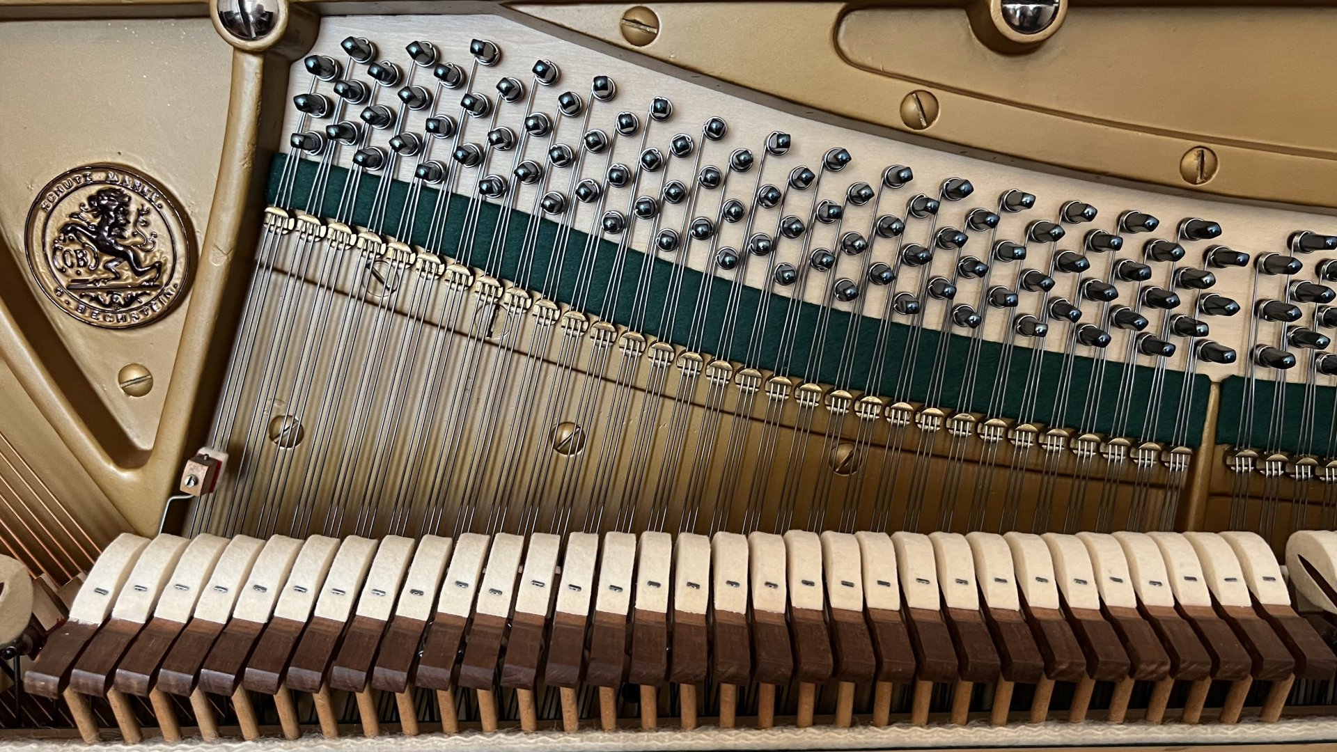 Dieses schöne Bechstein Klavier ist aus dem Jahr 1902 und überzeugt sowohl durch sein perfektes klassisches Gehäuse (Oberfläche neu in Polyester schwarz) als auch durch seinen romantischen Klang. Normalerweise verfügen ältere Klavier über 85 Tasten. Dieses Instrument weist hingegen die Besonderheit von 88 Tasten auf. Der Oberrahmen ist mit einer schlichten Verzierung in Form eines Ovals ausgestattet.