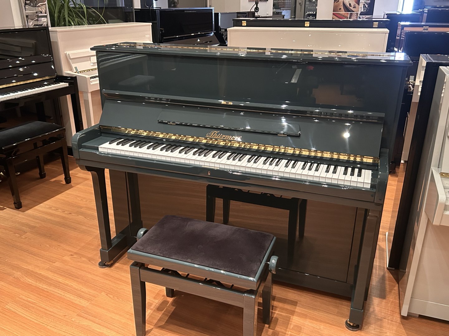 Ein Klassiker aus der Bochumer Manufaktur: das Thürmer 120 M. Gepflegtes Klavier Baujahr 1981, technisch einwandfreier Zustand und neue Oberfläche in Blaugrau Polyester. Ein in Handarbeit gefertigtes, zeitloses Klavier für Groß und Klein. Dynamisch umfangreiches und abwechslungsreiches Klangbild, auch für anspruchsvolle Spieler geeignet. Gegen Aufpreis auch mit AD Silent 2 Stummschaltung. Die Renner Mechanik wurde in unserer Meisterwerkstatt überholt und Verschleissteile wurden ausgetauscht. Das Instrument wurde penibel reguliert, gestimmt und intoniert.