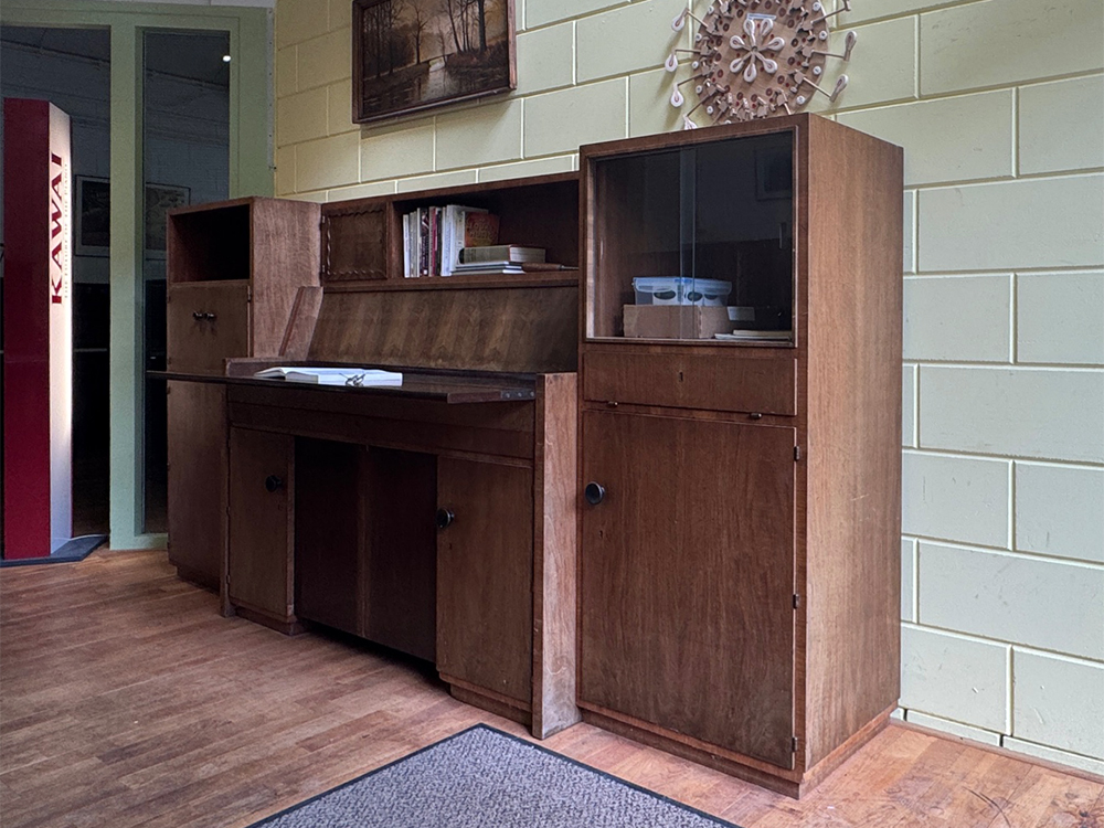 Een zeer zeldzaam model piano die makkelijk te veranderen is in een bureau.