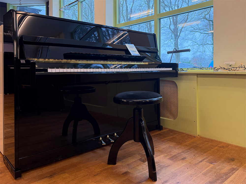Deze Schlögl 109 attractive piano is gebouwd in de Bohemia fabriek te Tsjechië. De piano is in prachtig zwart hoogglans uitgevoerd. Het is een Europees product met een prachtige warme toon. In Europa worden standaard betere houtsoorten gebruikt omdat Europese pianobouwers instrumenten willen maken die minstens een mensenleven lang mee gaan.