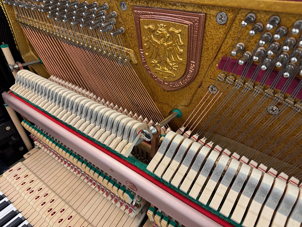 Deze Schlögl 123 exclusive piano is gebouwd in de Bohemia fabriek te Tsjechië. De heeft een prachtige zwart hoogglans kast. Het is een Europees product met een prachtige warme toon. In Europa worden standaard betere houtsoorten gebruikt, omdat Europese pianobouwers instrumenten willen maken die minstens een mensenleven lang mee gaan. Ook deze piano is door onze technische mensen in een prachtige toestand gebracht.